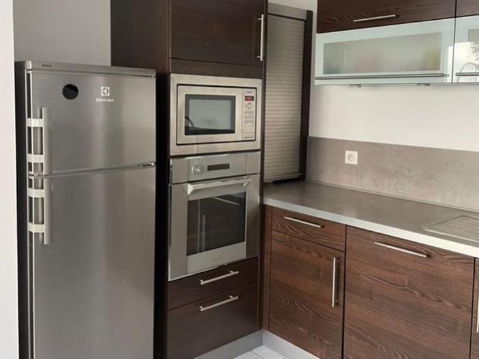 - Une cuisine meublée avec four, micro-onde, plaque de cuisson, frigo, lave-vaisselle, hotte etc.