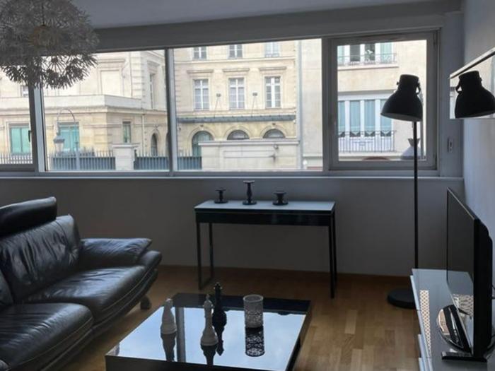 Reims (51) : A louer appartement T3 meublé, avec garage, situé dans l'hypercentre, au 1er étage (sur 4) d'une résidence de grand standing (Carré Royal) avec ascenseur. Un charmant appartement exposé sud-est d'une superficie de 61 m² habitables. Il comporte :