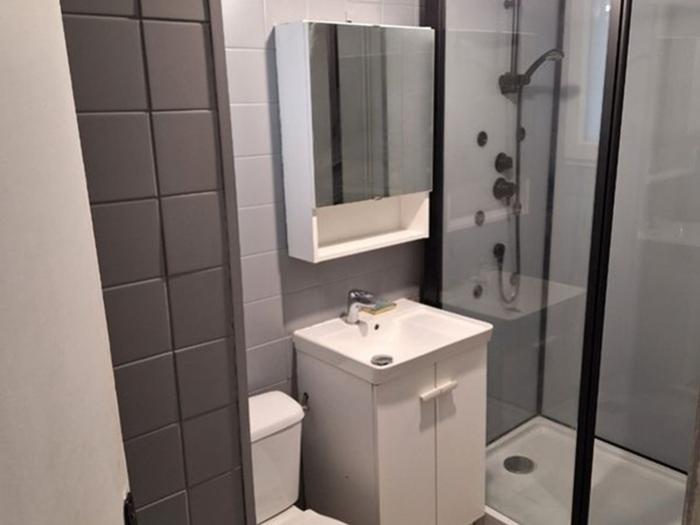 - Au rez-de-chaussée : Un petit couloir d’entrée, une salle de bain avec WC.