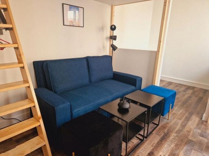 Les Sables d'Olonne (85) : Location studio meublé en rez-de-chaussée, avec mezzanine, d'une surface de 17,50 m², situé en plein cœur de ville, à deux pas de toutes les commodités et du Remblai. Un appartement fonctionnel, calme, donnant sur cour. Il propose :