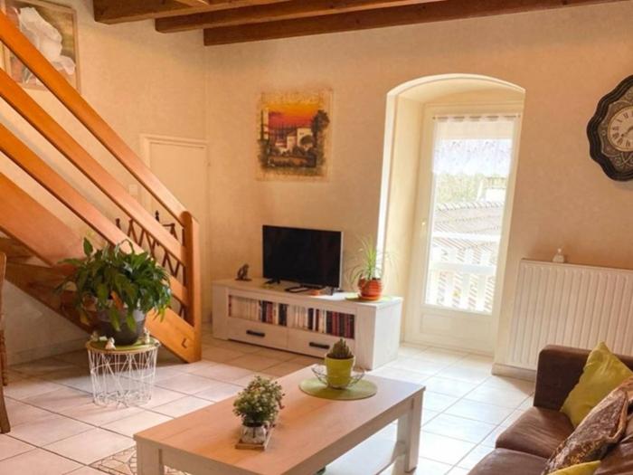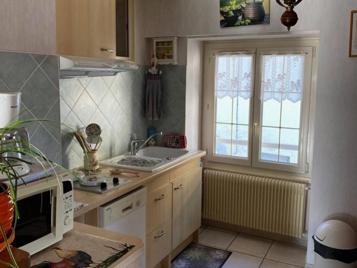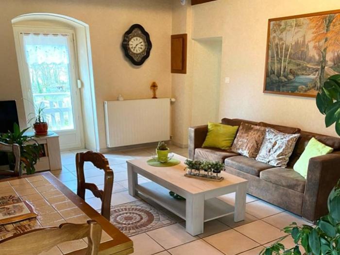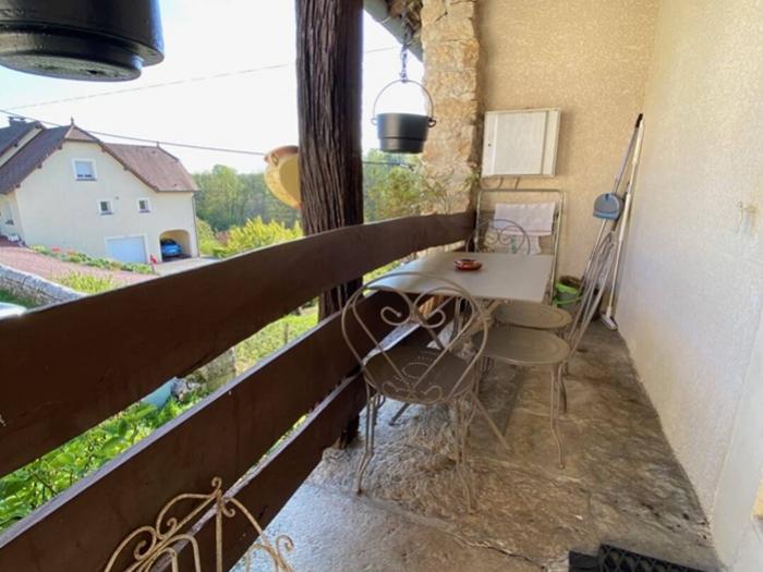 Agréable appartement situé au 1er étage d'une belle maison en pierre, comprenant : une cuisine entièrement équipée (lave-vaisselle, grille-pain, bouilloire, cafetière, micro-ondes…) ouverte sur le salon avec espace salle à manger, 2 chambres, 1 salle de bains (lave-linge, aspirateur, table et fer à repasser), wc. Balcon avec salon de jardin (table et 4 chaises). Charmante villégiature, propice au calme et au repos, au cœur d'une magnifique région.