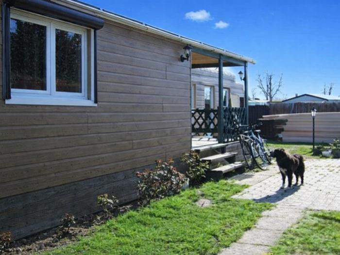 Agréable mobil-home de 56 m², fonctionnel, comprenant : pièce de vie avec coin cuisine équipée (lave-vaisselle, lave-linge…), 2 chambres, salle de douches, wc. Vous apprécierez la terrasse couverte et le jardin.