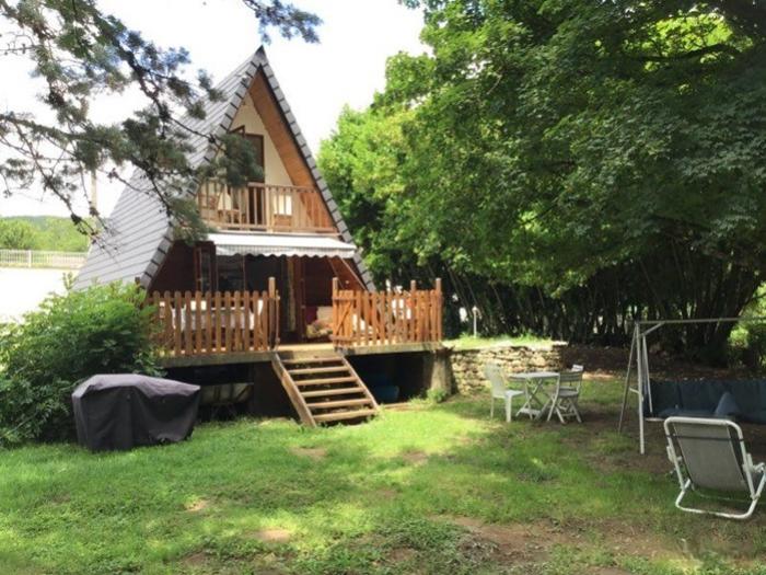 Souillac (46) : (Tourisme) Location chalet au bord de la Dordogne, (capacité 6 personnes), situé dans un cadre tranquille et naturel, avec un accès direct à la rivière. Il comprend :