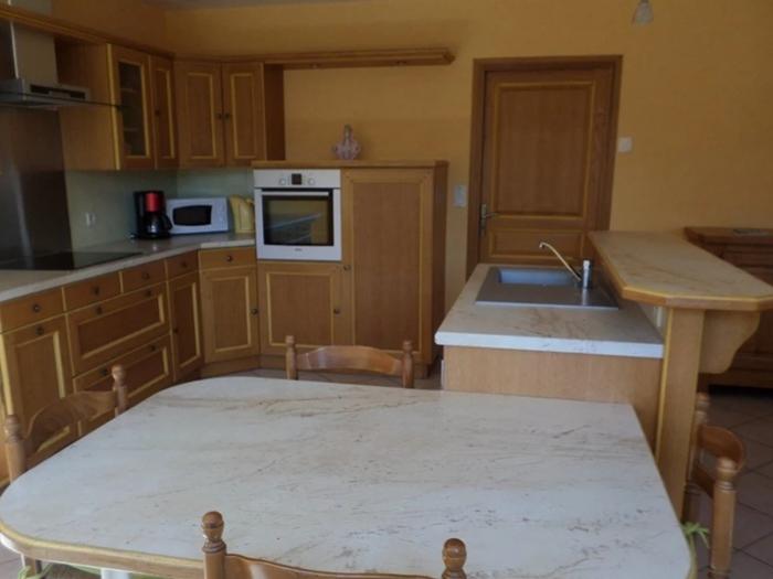 - Au rez-de-chaussée : une pièce de vie avec cuisine équipée (lave vaisselle, four, micro ondes, bouilloire, cafetière…), salon, salle à manger, 1 chambre (lit de 160), une salle de bains, un WC, une lingerie (lave-linge)