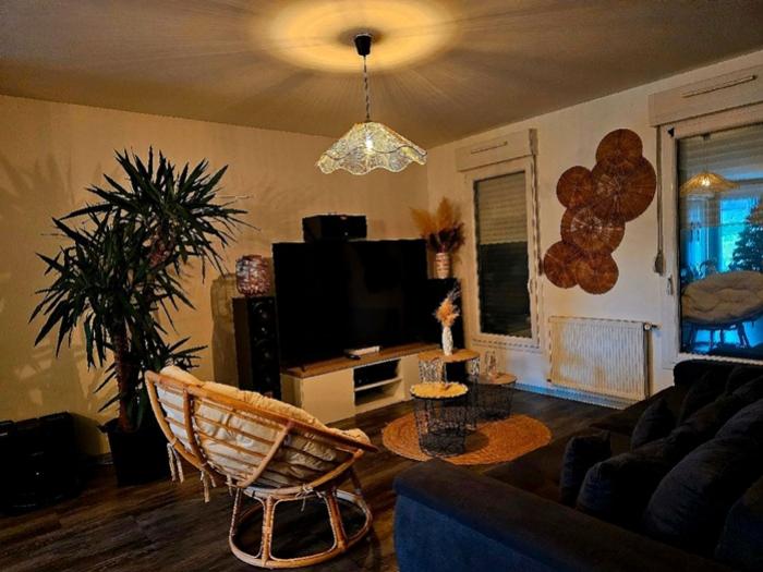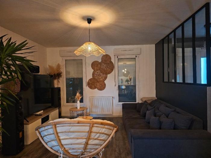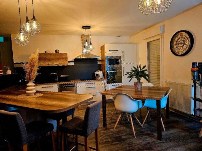 - Cuisine équipée : Four, lave-vaisselle, micro-ondes, réfrigérateur, Cookeo, appareils raclette/gaufre/crêpe, Senseo, Tassimo