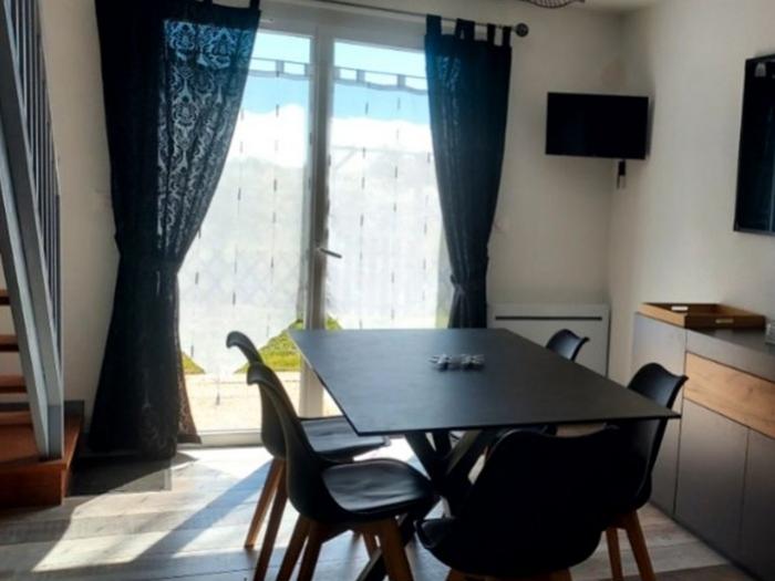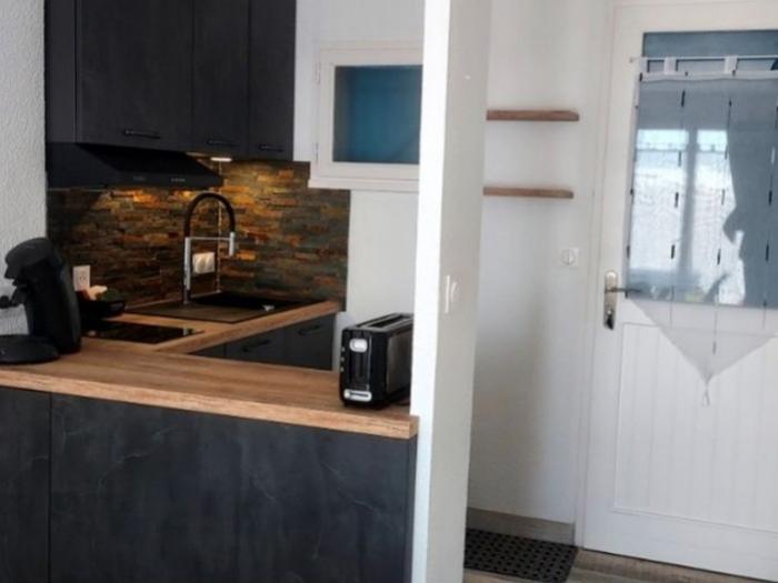 - Une pièce de vie avec espace salon et cuisine ouverte, entièrement équipée