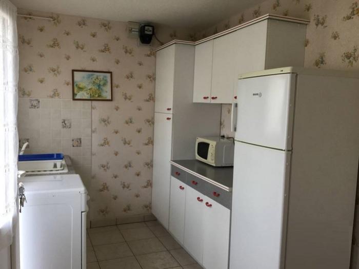… Cuisine : gazinière, un frigo-congélateur, un micro-onde, cafetière électrique