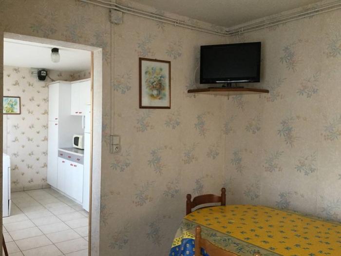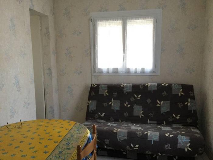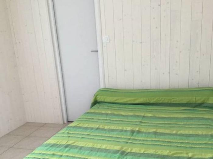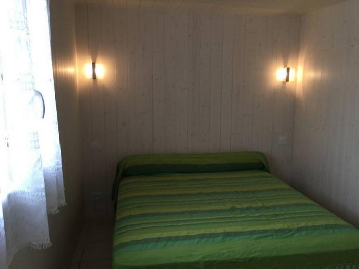 - Au rez-de-chaussée : d'un salon (canapé clic-clac, une table et 5 chaises, un buffet, TV), une cuisine équipée, une salle de douches (lavabo), débarras avec une machine à laver ainsi qu'un wc situé à l'extérieur sous l'escalier menant aux chambres.