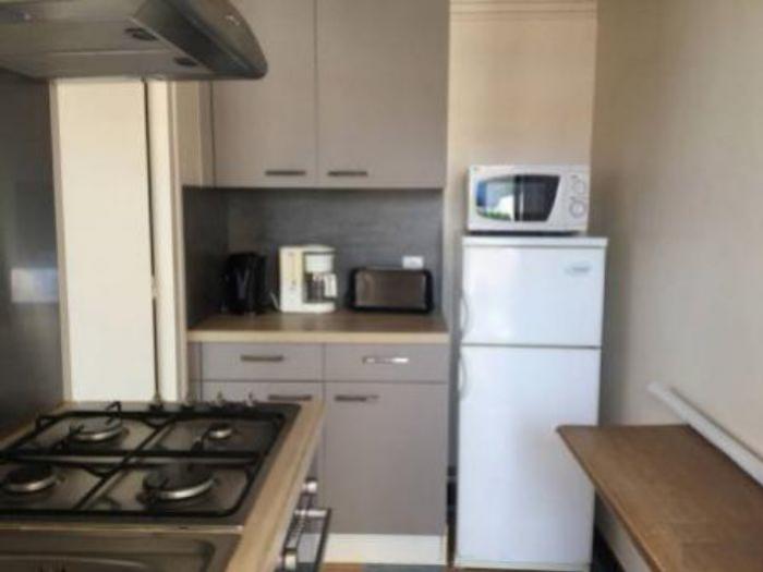 Cuisine : plaque 4 feux gaz, un four électrique, un frigo-congélateur, un micro-ondes