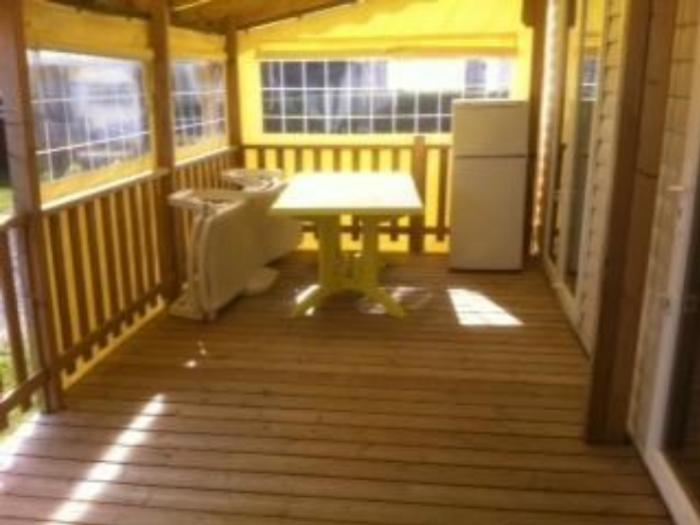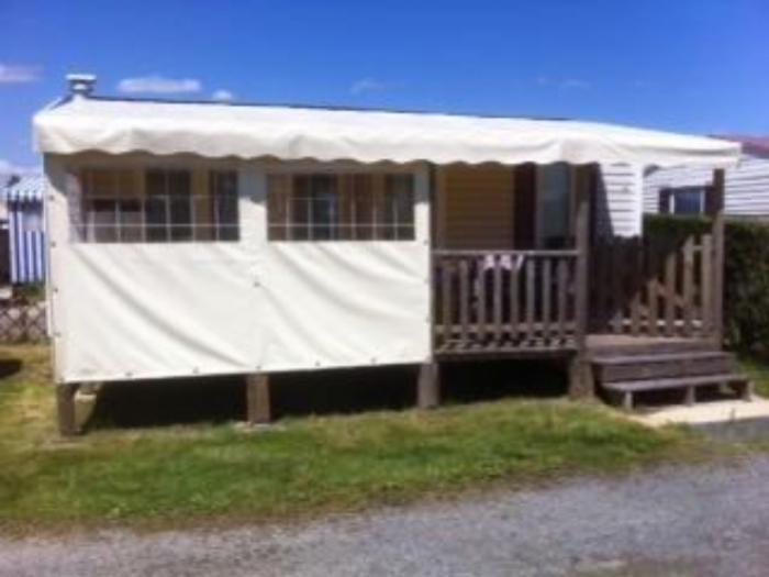 Mobil home tout confort, d'environ 30 m², comportant : Salon-séjour avec banquette-lit et TV, coin cuisine équipée (micron ondes, firgo, congélateur…), 2 ou 3 chambres, salle de douche, wc. Terrasse couverte fermée de 16 m² dotée d'un salon de jardin pour vos repas en extérieur.