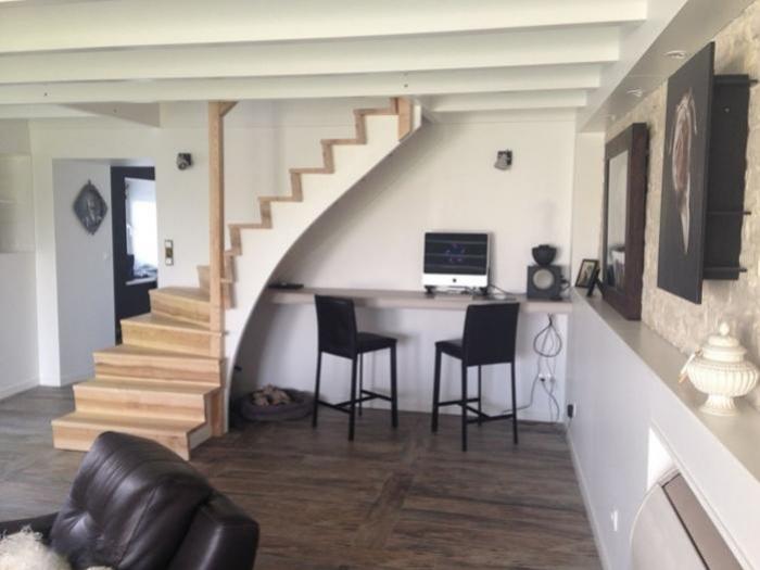 Angliers (17) : A vendre belle longère de caractère, de 9 pièces, entièrement rénovée, avec piscine et terrasse mobile, dans un environnement agréable, à seulement 15 minutes de la Rochelle. Une propriété spacieuse, exposée sud, d'une superficie habitable de 221 m², sur un terrain de 320 m². Elle comprend notamment :