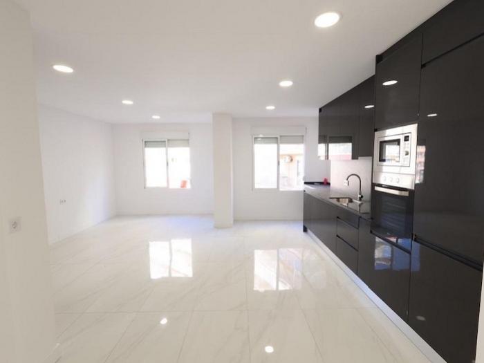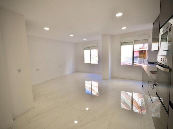 Torrevieja (03180) : Vente bel appartement de 4 pièces, entièrement rénové, avec terrasse et vue latérale sur la mer, d'une superficie de 104 m² Surface Construite, situé dans le cœur de Torrevieja à 30 mètres seulement de la mer et de la Plage del Cura. Un appartement lumineux et spacieux, au 3ème étage d'une résidence avec ascenseur. Il se compose comme suit :