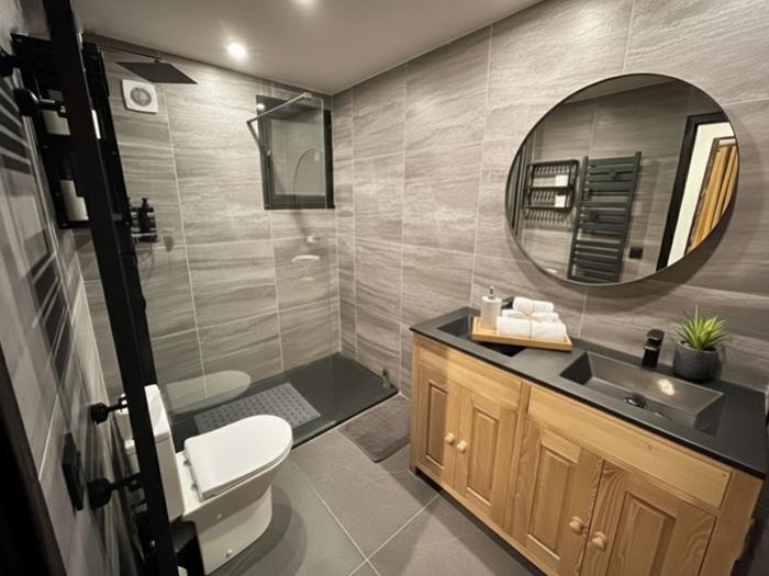 - Une grande salle de bain (double vasque, douche à l’italienne et WC).