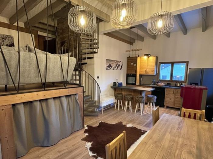 - Une mezzanine avec coin montagne (couchage supplémentaire pour deux personnes).