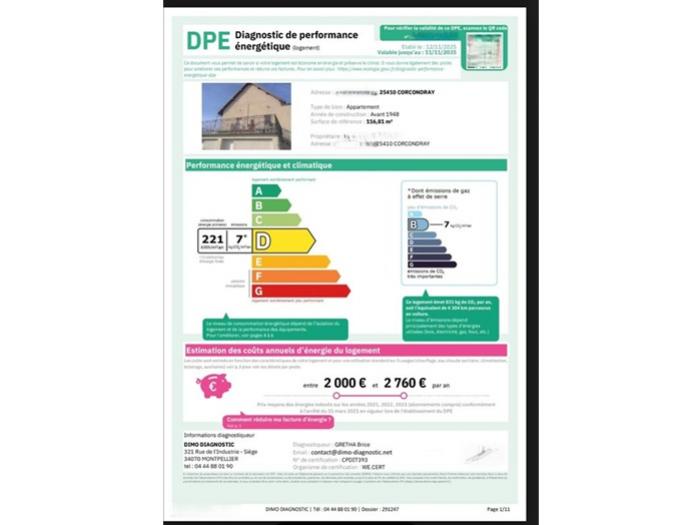 Corcondray (25) : A vendre appartement T4, avec terrasse, parking, situé au 1er étage d'une copropriété (sans ascenseur) agréable à vivre, à 8 minutes de Saint-Vit et 15 minutes de Château-Farine. Un logement spacieux d'une superficie habitable, de 116 m². Il comporte :
