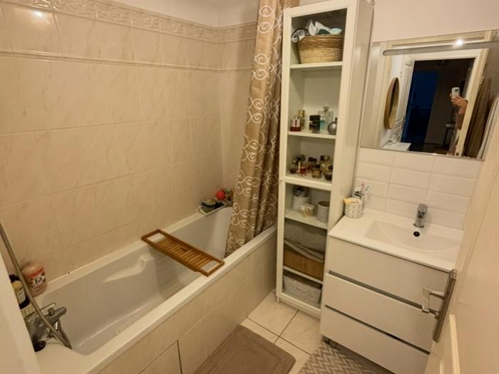 - Une salle de bain avec baignoire