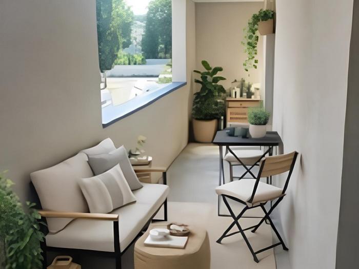 - Une loggia de 15 m², tout au long de l'appartement (accès depuis la chambre et le salon)
