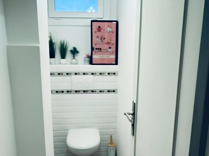 - Une salle d'eau élégante avec douche