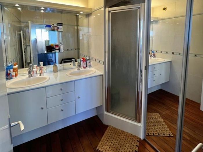 - Une salle d’eau avec double vasque et placard intégré