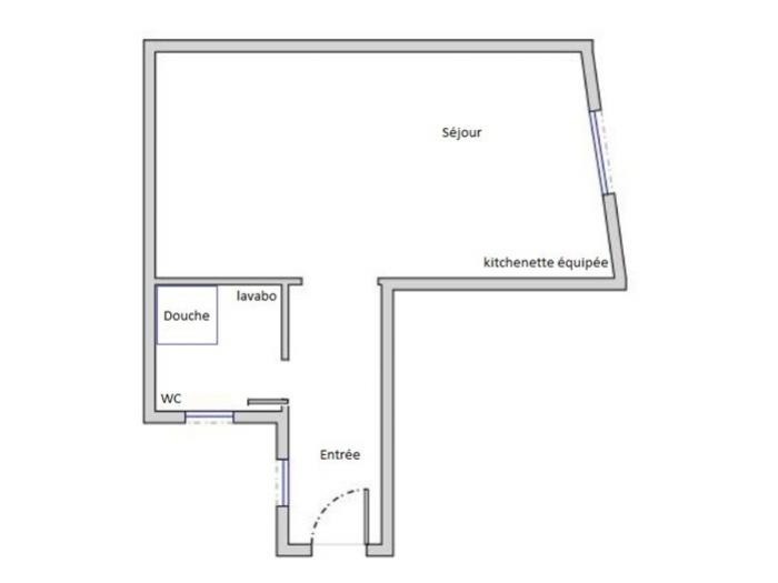 - Cuisine : Réfrigérateur, plaques électriques, hotte, évier, placards hauts