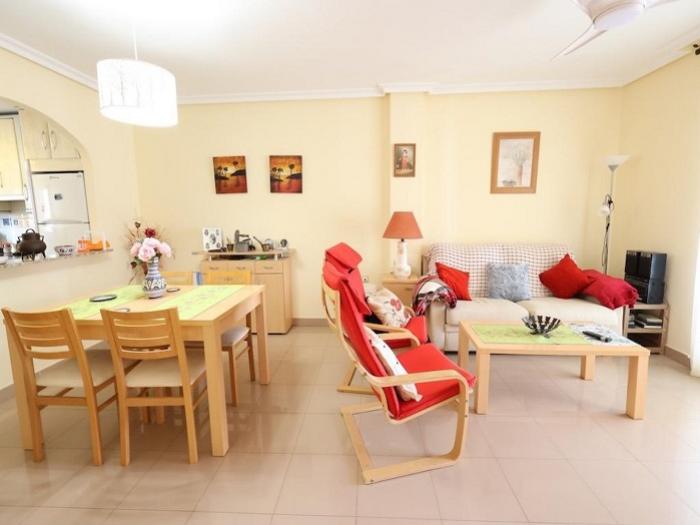 Orihuela Costa (03189) : (Costa Blanca) A vendre superbe appartement penthouse de 3 pièces, avec solarium, très bien placé, 2,5 km de la mer et des plages de la Costa Blanca, sur le secteur prisé de Cabo Roig. Un appartement bien agencé, meublé, équipé, d'une belle surface de 103 m² (construits), au 3ème étage d'une charmante résidence avec piscine commune, espaces verts et jeux pour enfants. Il comporte :