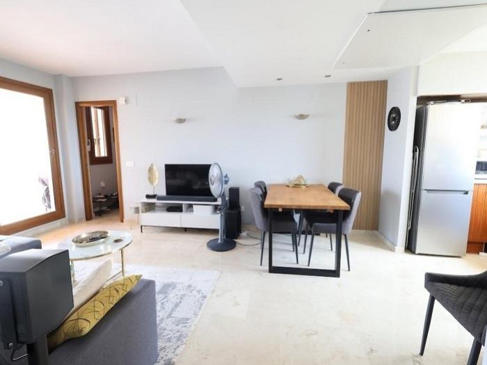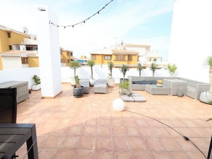 Torrevieja (03180) : Vente appartement Penthouse, de 3 pièces, avec une grande terrasse, d'une superficie de 70 m² (Surface construite) très bien situé, à seulement 100 m de la mer, sur le secteur de Punta Prima. Un bel appartement, meublé, climatisé, au dernier étage d'une résidence avec ascenseur, piscines communes et espaces verts. Il comprend :
