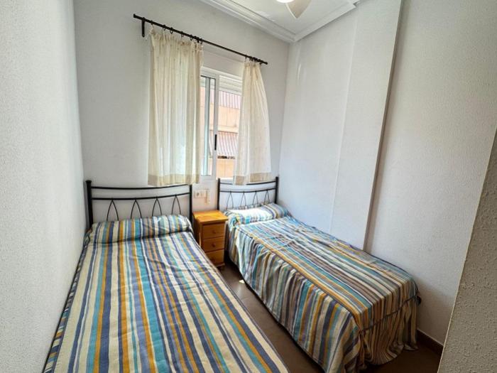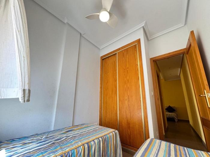 Torrevieja (03180) : Sur la Costa Blanca, à vendre appartement de 3 pièces, avec terrasse d'angle, d'une superficie de 59 m² (Surface construite) situé dans le centre de Torrevieja, à seulement 800 mètres de la mer, de la promenade. Un appartement lumineux, meublé, au premier étage d'une résidence avec ascenseur. Il comprend :