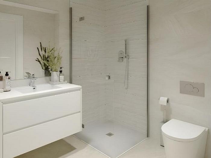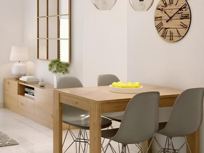 Torrevieja (03180) : A vendre agréable appartement contemporain neuf, de 3 pièces, avec terrasse, d'une superficie de 76 m² (surface construite 99 m²), à seulement 100 mètres de la mer, de la plage del Cura et de la promenade, au cœur de Torrevieja. Un appartement lumineux, agréable, au 1er étage, d'une résidence avec ascenseur et piscine sur le toit (2 appartements par étage). Il présente :