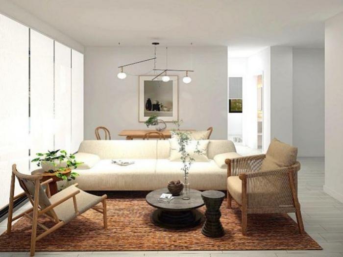 - Une pièce à vivre ouverte (salon/salle à manger/cuisine équipée) donnant sur une agréable terrasse de 11 m²