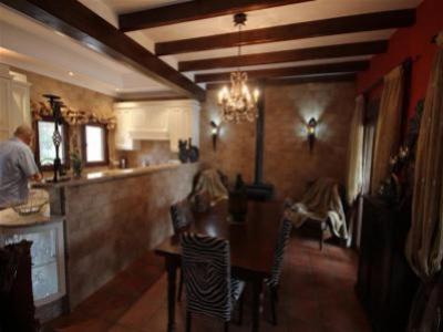 Nonobstant le fait que la maison est construite sur un très grand terrain il y a seulement 1500m2 de jardin tout le reste du terrain vous offre une intimité imprenable. Vous entrez dans la propriété par un grand driveinway vous donnant accès à une très patio andalous, avec une belle terrasse couverte avec bar extérieur cuisine avec coin barbecue et un petit étang.avec des poissons. entrant dans la zone principale de la propriété, vous trouverez un joli jardin arboré entourant une grande piscine. la maison elle-même est de style rustique et a été conçue par le propriétaire actuel en utilisant de la technologie et des matériaux de qualité supérieure. tels que quelques exemples sont le chauffage Dans le sol, fenêtres PVC double vitrage, enl'imitation bois de tres haute qualité, avec des moustiquaires et des grilles de sécurité. Une propriété avec très belles vues de campagne environnante a visiter absolument.