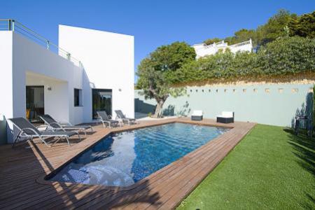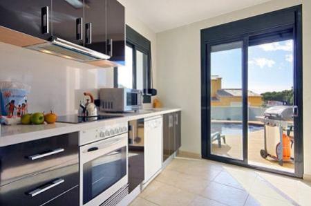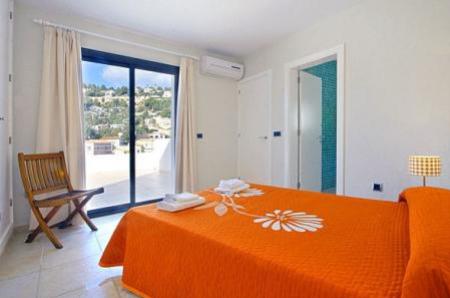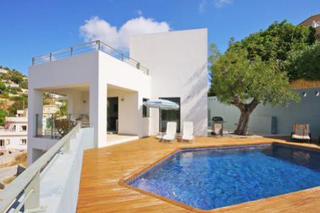 Impressionnante villa de style moderne avec piscine privee (7x4) situee a Benissa (Cote). La villa de construction recente et meublee avec beaucoup de gout a une vue sur la montagne et le Penon de Ifach du solarium, la villa se trouve dans l?urbanisation de la Fustera sur la cote. Urbanisation tranquille et tres privee. Nous disposons d?une ample terrasse ou se trouve la piscine. La surface habitable est d?environs 200m et est divisee en trois etages independants. Grand solarium au 2eme etage. Le terrain d?environs 900 m2 est plat, entierement cloture et il ya assez d?espace pour y garer plusieurs vehicules. Interieur: la maison est tres agreable et est construite sur deux etages et sous-sol. 1er etage: (acces sans escalier, de plein pied). Forme par un ample salon-salle a manger avec TV par satellite, confortables meubles, 1 appareil d?air conditionne et avec vue sur la piscine. Ample cuisine separee totalement equipee, avec vitro ceramique, lave vaisselle, frigo-congelateur, avec acces au salon-salle a manger et a la terrasse de la piscine. 1 chambre avec 2 lits individuels. une salle de bain avec baignoire, wc y lavabo. Rez-de-chaussee: on y accede par un escalier interieur (16 marches). Une ample chambre avec un grand lit et un appareil d?air conditionne et sortie a la terrasse inferieure. 1 chambre avec deux lits individuels. 2eme etage: (on y accede par un escalier interieur de tous les etages, toute la maison communique par des escaliers interieurs). 1 chambre avec un grand lit, 1 appareil d?air conditionne et salle de bain en suite avec douche, wc y lavabo. De cette chambre, on accede a un ample solarium avec vue sur le Penon de Ifach et sur l?urbanisation.