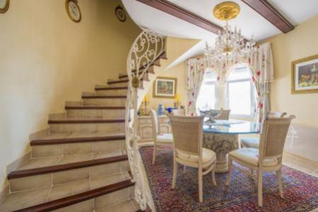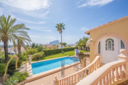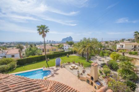 Villa a Calpe avec une vue spectaculaire sur la mer et grand terrain de 1600 m2, situe a 2,5 km de la plage et du centre de Calpe. La maison a une superficie de 270 m2 1.600 m2 de terrain (sont 2 parcelles) avec 2 entrees et une grande piscine, beau jardin avec pelouse, arbres fruitiers et de palmiers. L'etage principal (1er etage) dispose d'un hall, un salon avec cheminee, une autre salle a manger avec vue sur la mer et acces a une terrasse donnant sur la mer, cuisine (non utilise), 2 chambres doubles, 1 salle de bain et placard. Cette etage avec climatisation partiellement et depuis la nous avons acces a l'etage superieur ou nous avons une petite piece (qui pourrait etre une autre chambre), une salle de bains avec douche italienne et une terrasse avec vue sur la mer et le Penon de Ifach. Le rez-de-chaussee est accessible par un escalier exterieur, nous avons un appartement avec 2 chambres, 1 salle de bain, petit salon-salle a manger et une kitchenette. Garage avec acces a les chambres pour le personnel de service, salle de bains et cave.
