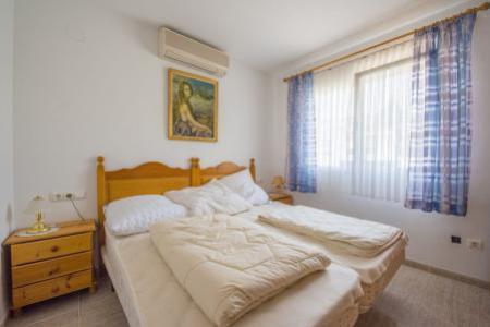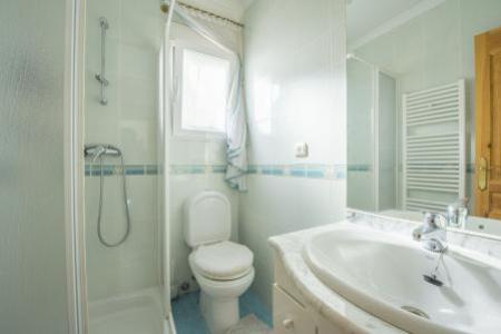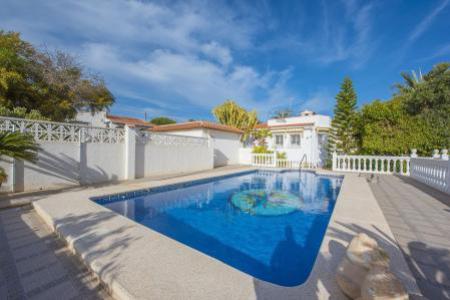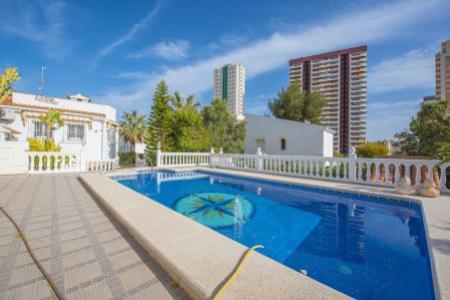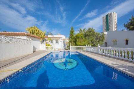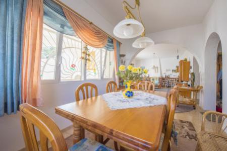 Belle villa a Calpe avec piscine privee et a 400 m de la plage de sable. Grand terrain de 1500m2 avec jardin et garage ( pour 1 voiture ) et un parking pour 3-4 voitures sur le terrain. 8x4m piscine privee. Surface: 150 m2 repartis en 3 chambres doubles, deux avec salle de bains avec douche et une salle de bains avec douche etage. Grande salle de sejour ensoleille avec cheminee, cuisine entierement equipee, terrasse couverte. Toute la maison dispose de la climatisation de chauffage (chaud / froid ) et central au gaz (bouteilles), une salle de stockage avec machine a laver, fenetres a double vitrage. Il est a seulement 100 metres des grands supermarches et env. 2km du centre ville et des commerces.