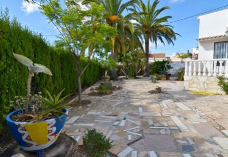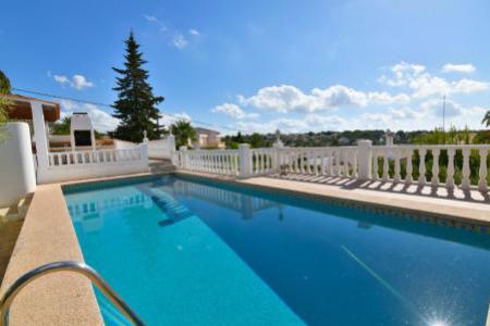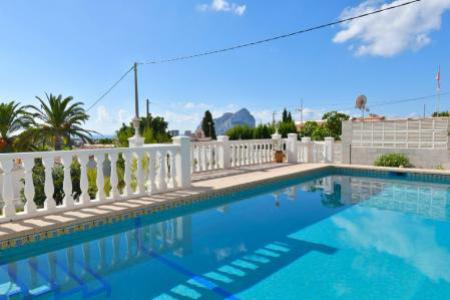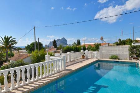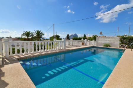 Villa dans un quartier calme de Calpe Cometa comprenant salon/salle a manger avec cuisuine, 3 chambres a coucher (1 avec terrasse privative), 2 salle de bains, salles de stockage, entouree d'un grand jardin avec pergola, une grande piscine 10x4m, un barbecue et une douche exterieure. De la piscine, vous avez vue sur la mer. En plus, chauffage central au gaz, air conditionne partout et parking pour plusieurs voitures.