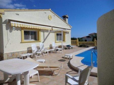 Il y a un salon-salle a manger avec cheminee, cuisine independante avec acces direct a la piscine, 3 chambres a coucher (une avec salle de bains en-suite avec baignoire, toilette et lavabo) et 1 salle de bain avec douche, toilette et lavabo.