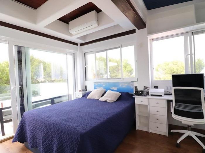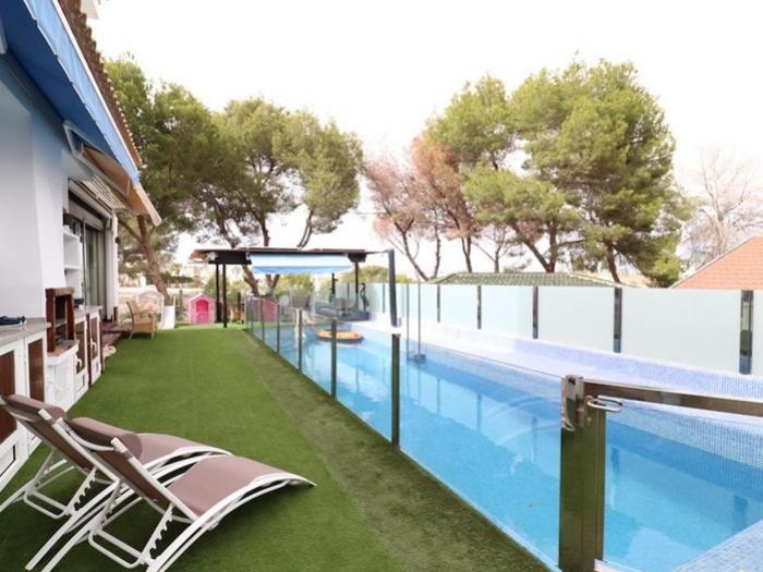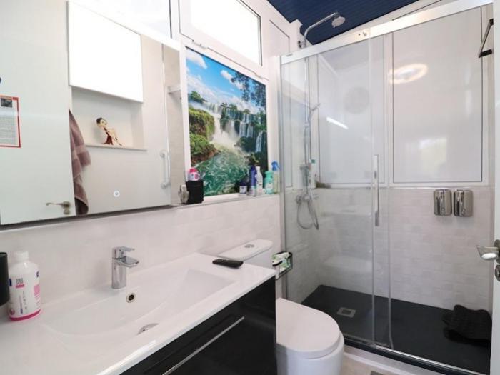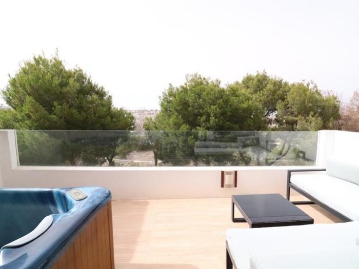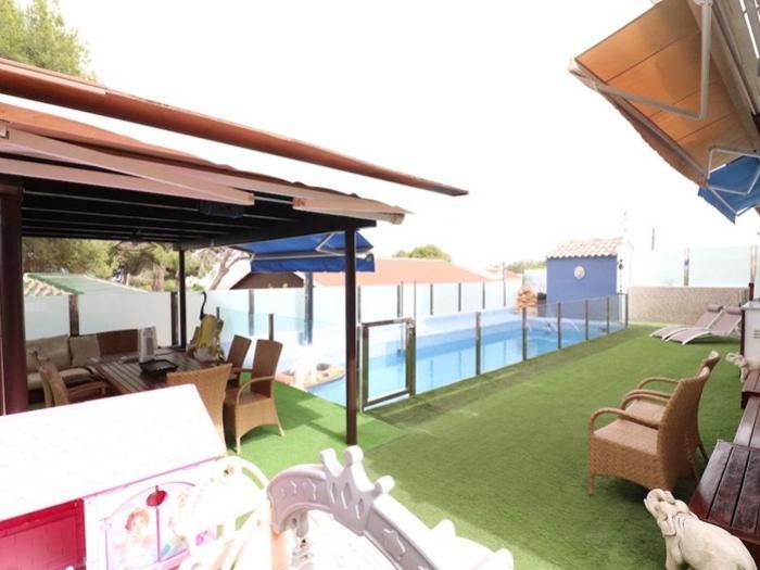 Orihuela Costa (03189) : Vente magnifique propriété de 4 pièces, d'une superficie de 80 m2 habitables en surface utile (Surface construite 130 m2), située face à un parc naturel, dans un quartier résidentiel (Proche Los Dolces), à 2700 m de la mer et des plages. Une villa individuelle, semi-meublée, et climatisée, avec une parcelle de terrain de 225 m². Elle comporte :