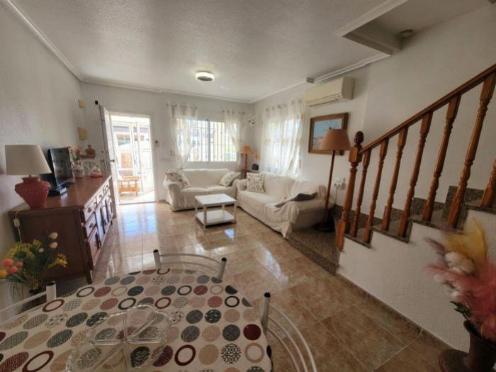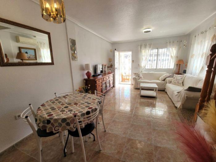 Vente d'une charmante maison de ville, avec véranda et terrasse, d'une superficie de 90 m² (Surface construite), située dans un quartier résidentiel, à seulement 750 m de la mer et des plages, tout proche de Torre de la Horadada (proximité de la Playa de las Villas, playa del Puerto). Une propriété sur 3 niveaux, exposée Sud, vendue meublée et climatisée. Elle propose :