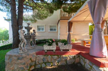 Cette magnifique villa se trouve à Ciudad Quesada et jouit d'un panorama privilégié sur le paysage méditerranéen du « Parque del Recorral ». La propriété se dresse sur un terrain de plus de 2.000 m² et une superficie de 755 m². La maison est située sur une élévation du terrain qui domine l'ensemble du jardin, la piscine et les espaces de loisirs, les garages et « le Parque del Recorral ». La maison ouvre ses portes sur un majestueux living central à partir duquel sont distribuées toutes les pièces : au rez-de-chaussée une salle à manger adjacente, une grande cuisine, trois chambres doubles et deux salles de bain, au premier étage une galerie surélevée, deux chambres doubles avec terrasse sur le jardin et deux salles de bains et en sous-sol une inmense salle pour tout usage et spa. La maison est équipée avec chauffage au sous-sol dans le living et chauffage central dans tout le reste. Tous les équipements et services techniques sont centralisés dans une salle prévue à cet effet. La propriété dispose d'un appartement séparé pour le service. Le jardin avec ces plates-bandes, ces arbres fruitiers et ombrageux et la zone de loisirs sont soigneusement entretenus. Dans le jardin plusieurs recoins offrent des espaces de confort et de détente comme le coquet belvédère, la pool-house avec cuisine extérieure, le barbecue, les salles de bains, la tonnelle avec son coin repas et espace chill-out et le jacuzzi. Les installations techniques concernant le jardin et la piscine se trouvent dans une salle en retrait. La propriété dispose de garage et d'un parking couvert pour plusieurs voitures. Cette villa spectaculaire est le cadre idéal pour une vie en famille.
