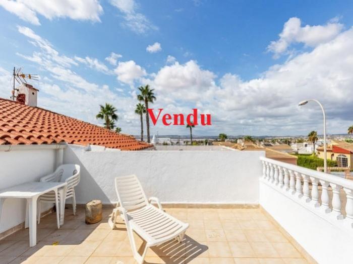 Torrevieja (03180) : Vente petite maison au calme, de 3 pièces, d'une superficie de 55 m² (Surface construite 62m²), situé à proximité du parc naturel de Torrevieja et ses lacs salés, à 6,5 km de la mer et des plages. Une propriété sur deux niveaux, meublée, avec un espace terrasse de 22 m². Elle comporte :