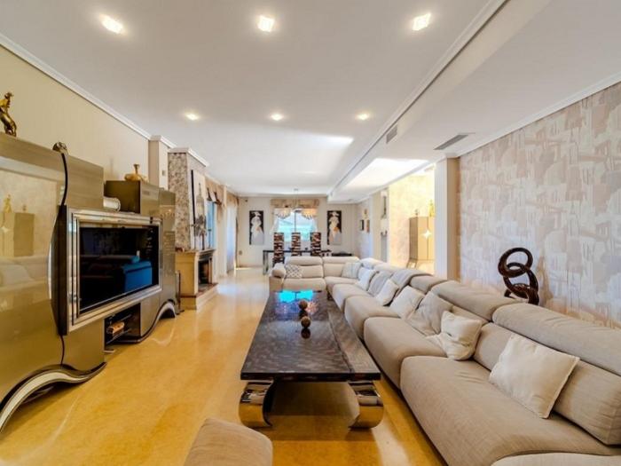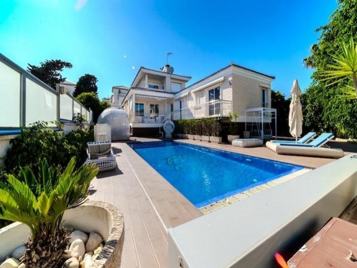 Torrevieja (03180) : Vente élégante villa, indépendante, de 7 pièces, avec jardin, piscine, d’une vaste superficie de 438 m² habitables, située dans un quartier résidentiel, à seulement 300 mètres de la mer et de la grande plage de la Mata. Une propriété climatisée, meublée, au calme, sur une belle parcelle de 790 m². Elle comprend :