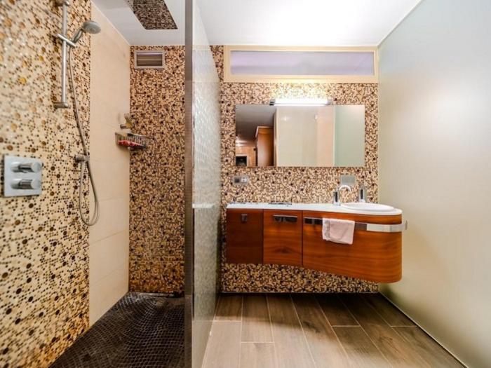 Au sous-sol, un grand salon, une salle de cinéma moderne et un espace bien-être avec sauna finlandais et hammam.