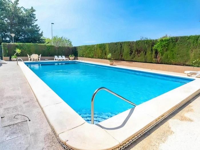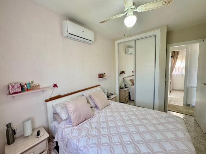 Torrevieja (03180) : A vendre agréable maison individuelle, sur deux niveaux, avec jardin, terrasse et solarium, d’une superficie de 97 m², située dans un quartier résidentiel privilégié (Punta Prima), à seulement 1300 mètres de la mer, et des plages. Une belle propriété, meublée, climatisée, sur une belle parcelle de 182 m², le tout au sein d'une urbanisation avec piscine commune. Elle comprend :