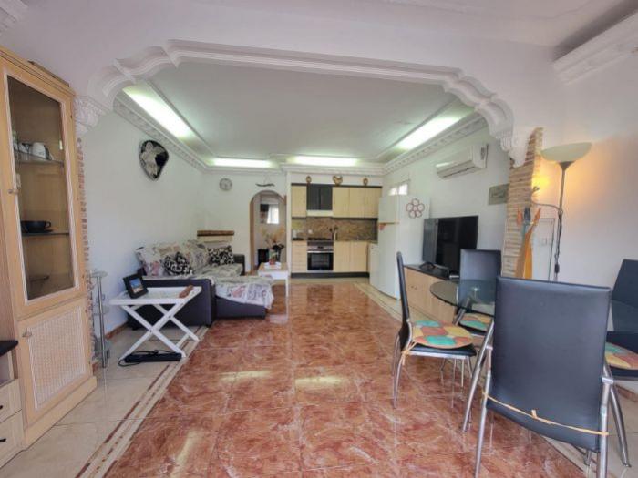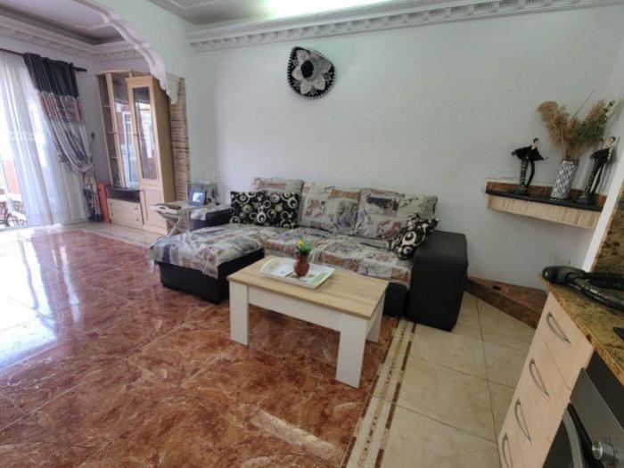 Mise en vente d'une petite maison d'angle, mitoyenne, avec solarium, d'une superficie de 50 m² (Surface construite 60 m²), située dans un secteur résidentiel (La Siesta), à proximité du Parc Naturel de La Mata, à 8 km de la côte et des plages de Torrevieja. Une propriété sur deux niveaux, meublée, et climatisée, d'une superficie de 50 m². Elle se compose comme suit :