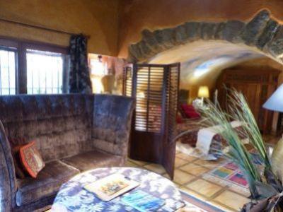 Son intérieur a une atmosphère décontractée qui vous enveloppe pour la cordialité de ses propriétaires quant à sa décoration magnifique et au respect des éléments traditionnels de sa réhabilitation où nous trouvons des plafonds de dos catalans, des arches en pierre et des suites de 50 à 80 m² simplement Unique, mention spéciale à sa grande bibliothèque avec grenier avec plus de 4 000 livres. À l'arrière de la maison, il y a un jardin d'environ 600 m² avec piscine et de grands arbres idéaux pour dérouler la nature enroulée.