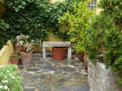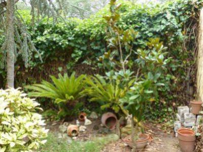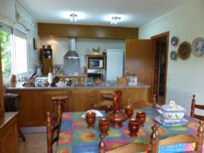 Entrée par une rampe qui mène au garage de 100 m² divisé en deux espaces, l'un pour le garage et l'autre pour le salon avec coin cuisine et cheminée en fer. Extérieur avec salle à manger d'été, maison pour outils, barbecue et verger.