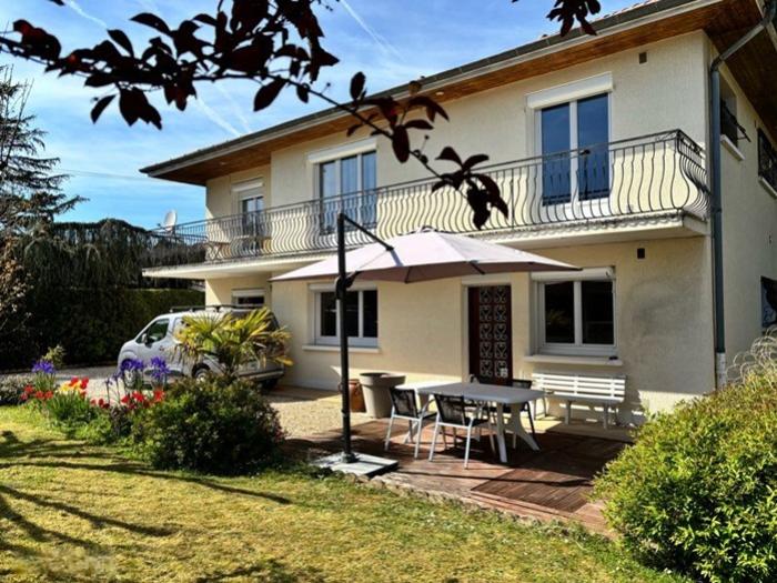 Bourg en Bresse (01) : Particulier vend maison familiale F6, composée de deux logements indépendants, située au fond d’une impasse, dans un quartier résidentiel calme, à seulement quelques minutes à pied du centre-ville. Une propriété lumineuse des années 70, offrant une superficie de 214 m² (171 m² habitables), sur un terrain paysagé de 742 m². Elle présente :