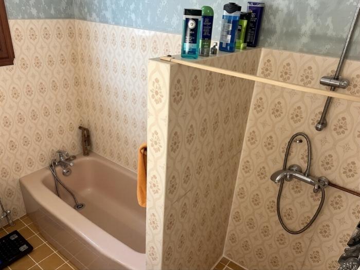 - Une salle de bain avec douche et baignoire