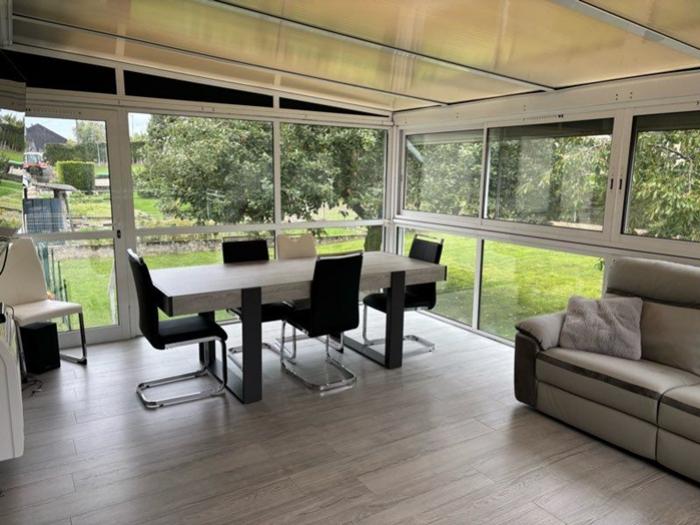 Equipements : Chauffage central au gaz+ poêle à granulés, fenêtres double vitrage + volets roulants électriques, tout à l’égout, VMC, et climatiseur réversible et volets roulants électriques solaires dans la véranda, fibre internet.
