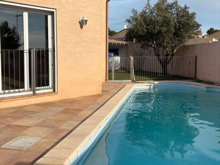 Narbonne (11) : Particulier vend maison F5 avec piscine, véranda et garage, située dans un quartier calme et recherché. Maison individuelle sur trois faces, construite en 2000, en très bon état, d’une superficie de 128 m² habitables, édifiée sur une parcelle de 332 m², exposée plein sud. Très fonctionnelle, la maison se compose comme suit :