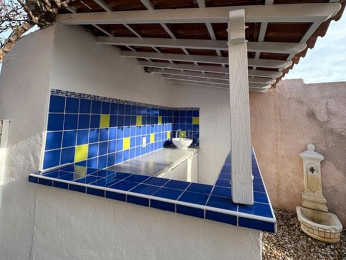 - Une cuisine d’été équipée avec coin barbecue et petit réfrigérateur.